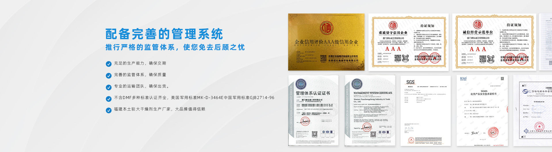 廈門(mén)源弘誠(chéng)工貿(mào)有限公司成立于2002年,是一家國(guó)內(nèi)規(guī)模較大的專(zhuān)業(yè)從事防潮防霉用品的生產(chǎn)廠(chǎng)家,本廠(chǎng)通過(guò)ISO9001:2015質(zhì)量管理體系認(rèn)證,證書(shū)編號(hào):11719QU0103-10ROS. 致力于干燥劑系列產(chǎn)品的開(kāi)發(fā)及生產(chǎn),積累多年的產(chǎn)品包裝,儲(chǔ)存,運(yùn)輸?shù)姆莱苯?jīng)驗(yàn)??蔀榭蛻?hù)提供專(zhuān)業(yè)科學(xué)的防潮包裝方案,對(duì)于每一種產(chǎn)品的包裝防潮力求做到最為完美的設(shè)計(jì)。